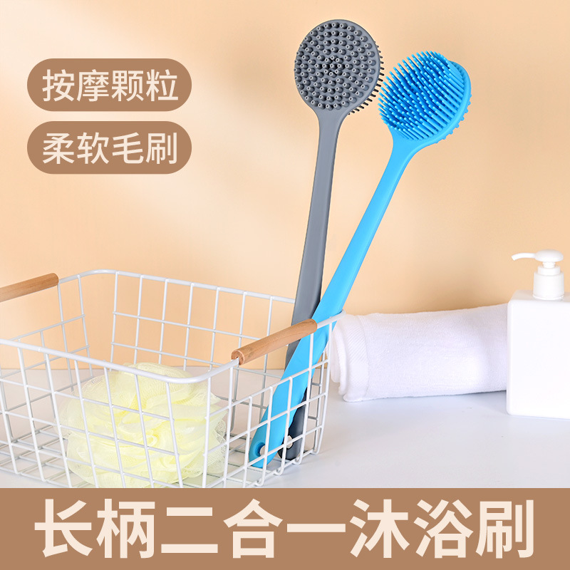 クロスボーダーのシリカゲルの長い柄のマッサージの入浴ブラシの多機能の両面の入浴ブラシは背中の入浴タオルの入浴の神器を拭きます。