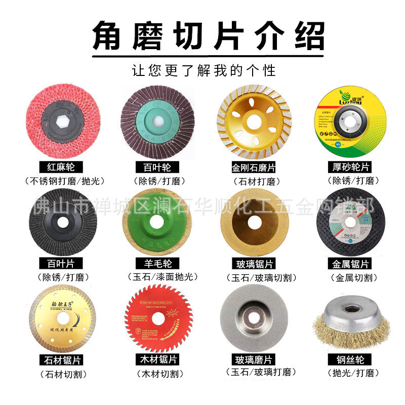 グラインダー部品砂輪片金属切断片ガラス木材石材鋸片羊毛輪百葉輪紅麻輪