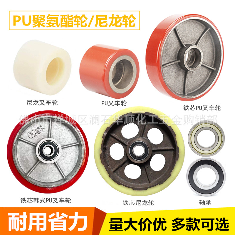 フォークリフト車輪部品puポリウレタンホイール手動油圧搬送車ナイロン歯車単輪馬頭輪虎輪