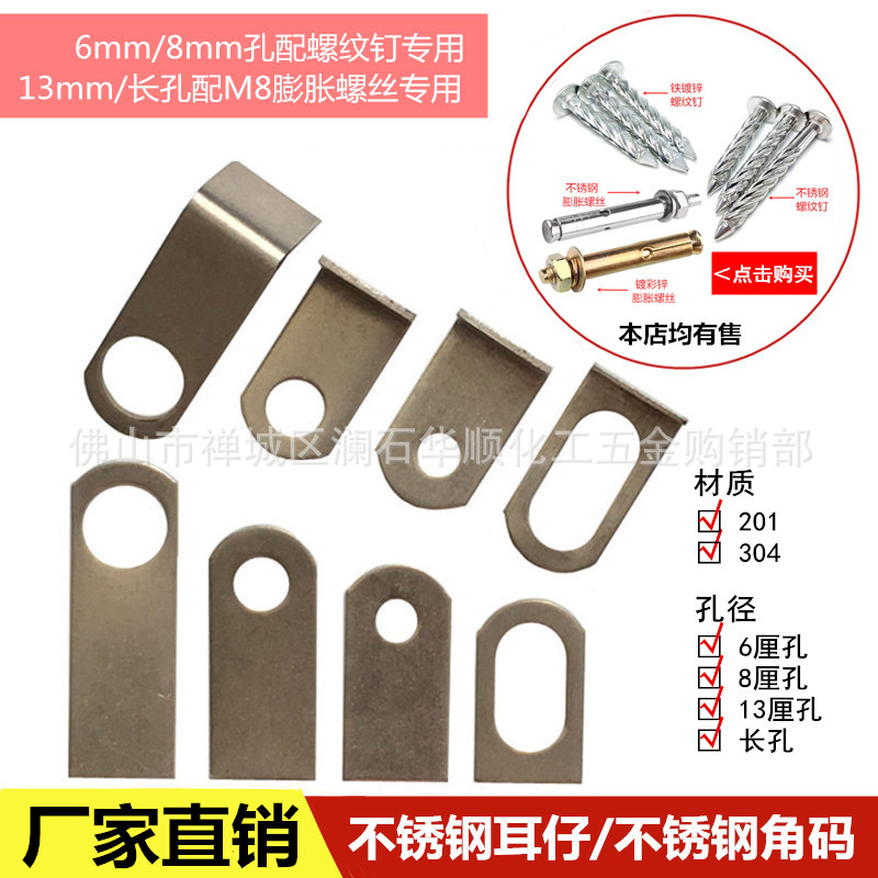 ステンレス耳仔固定片13mm/8mm/6mm/長穴溶接片盗難防止網溶接部品ステンレス角コード