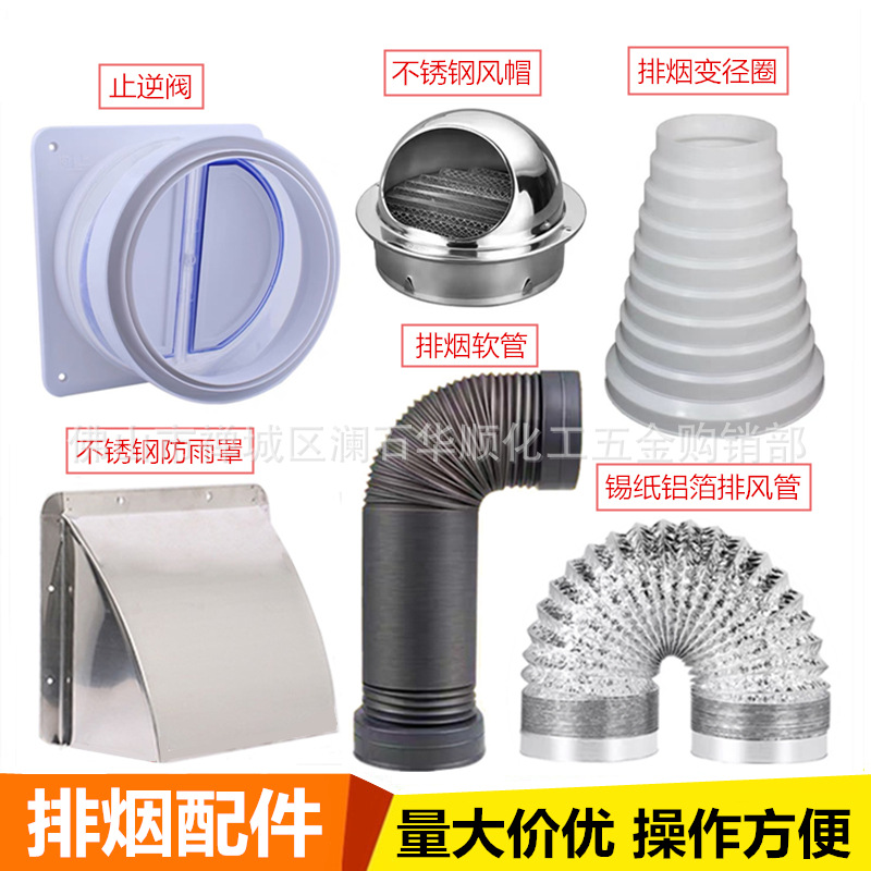 304ステンレス風帽油煙機プラスチック排煙管変径リングアルミ箔通風管厨房煙道逆止弁