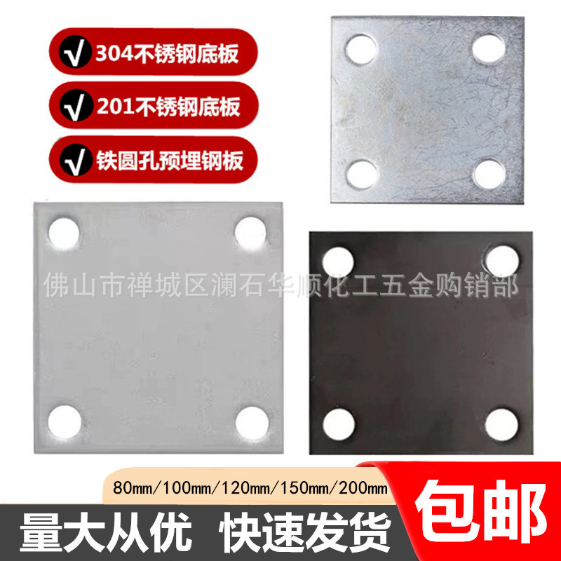 304ステンレス底板丸穴角型板201欄干柱固定板手すり埋込材鉄鋼板