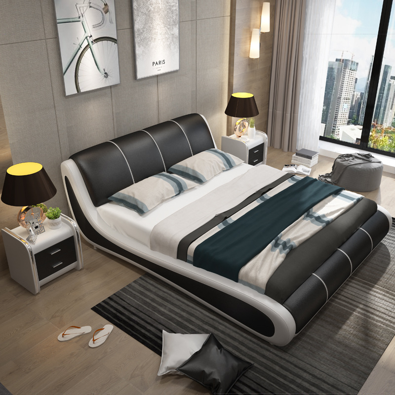真皮床1.8米双人婚床1.5软床现代简约床主卧榻榻米欧式皮艺床家具