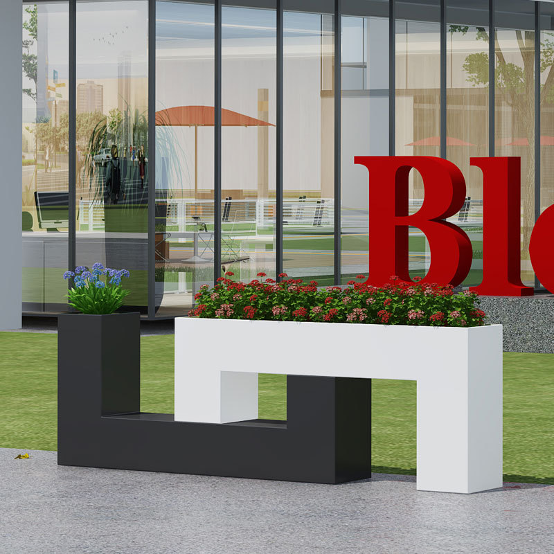 铁艺户外长方形花箱花架花盆商业街花坛室外回型花槽隔断组合