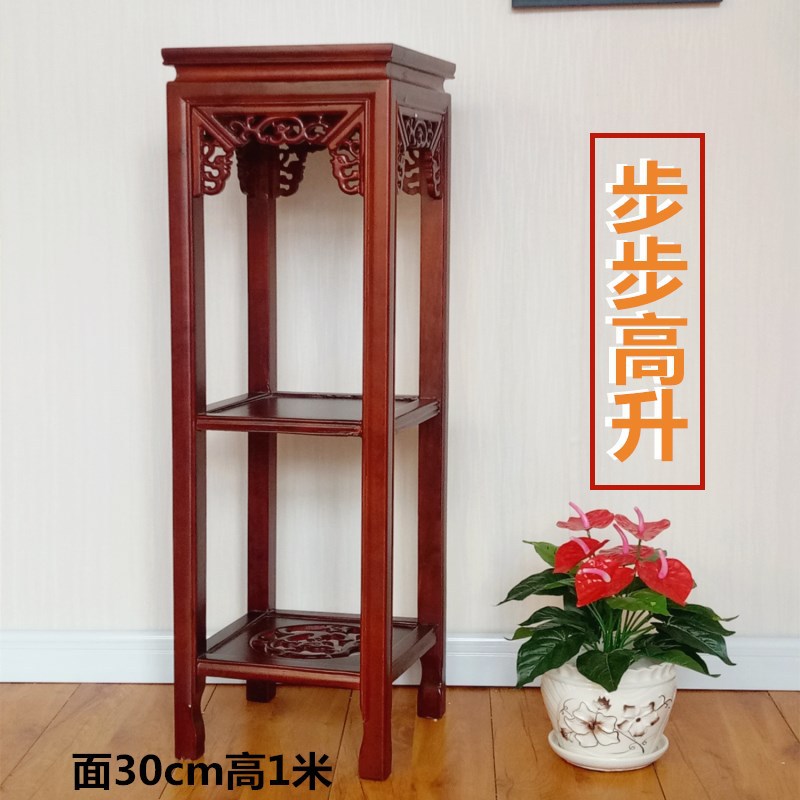 绿箩花架实木单个置物架方形落地中式仿古典客厅榆木花几盆景架子