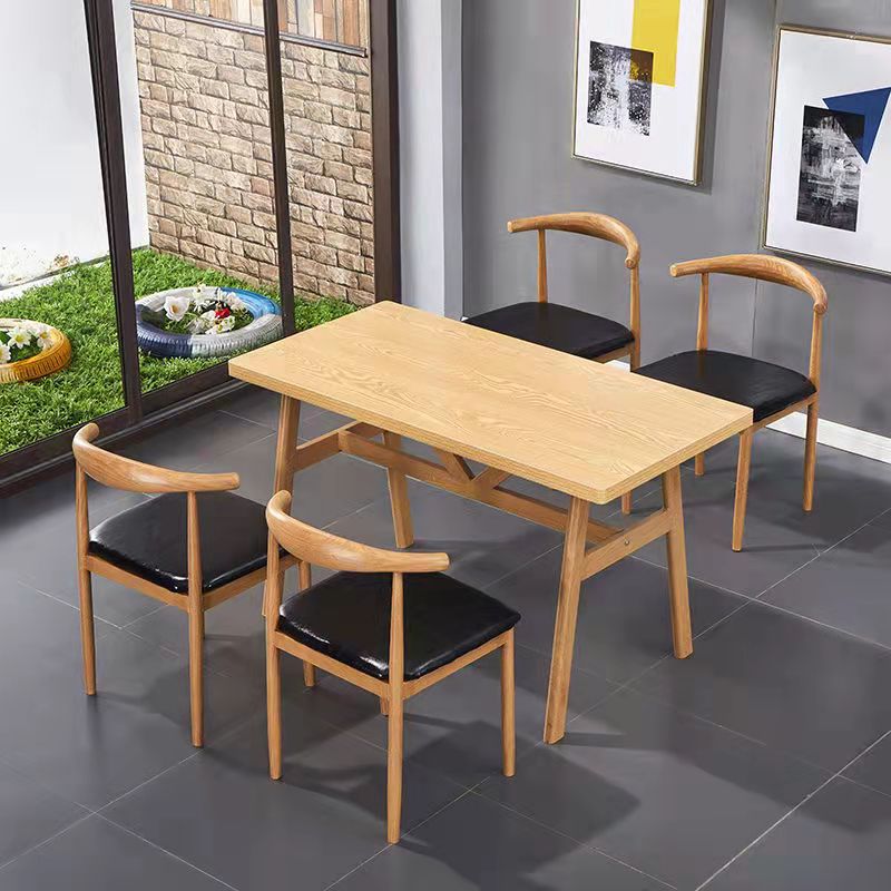 商用快餐桌椅组合铁艺牛角椅餐饮店食堂奶茶烧烤面馆长方形餐桌椅