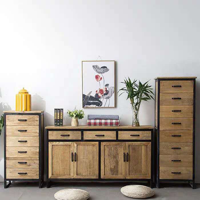 美式玄关柜工业风铁艺收纳柜子储物柜实木复古抽屉式斗柜置物柜