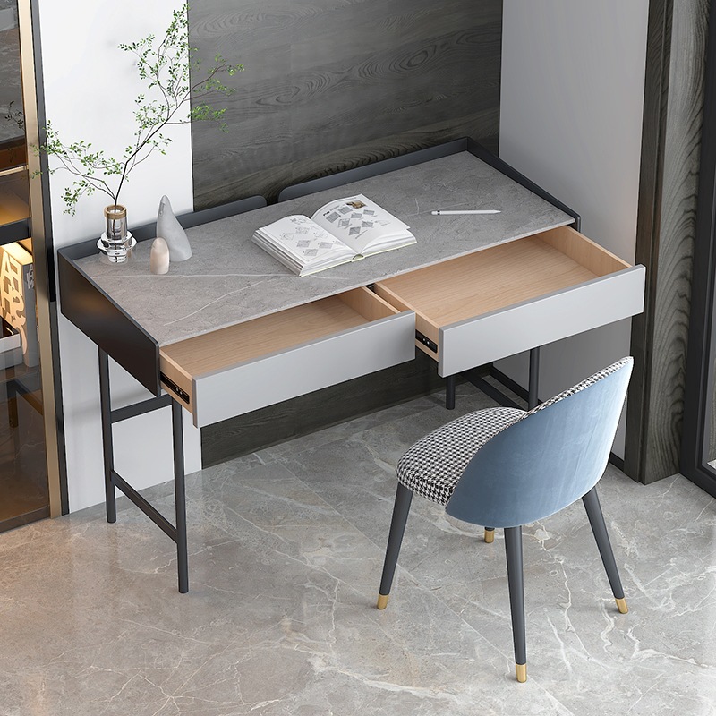 岩板学生书桌梳妆台小户型轻奢卧室写字台简约现代家用电脑桌飘窗