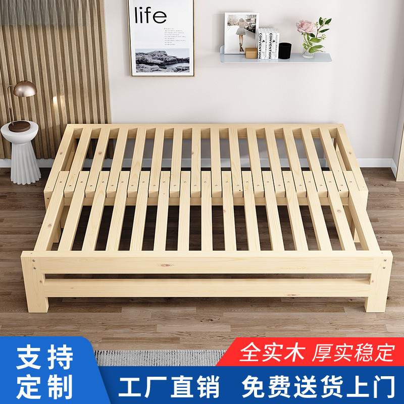简易实木床沙发榻榻米抽拉多功能伸缩床午休床拼接小户型推拉床