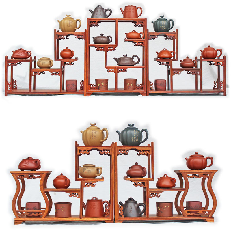 非洲花梨木博古架小号桌面台式多宝格茶杯紫砂茶壶展示架双层收纳