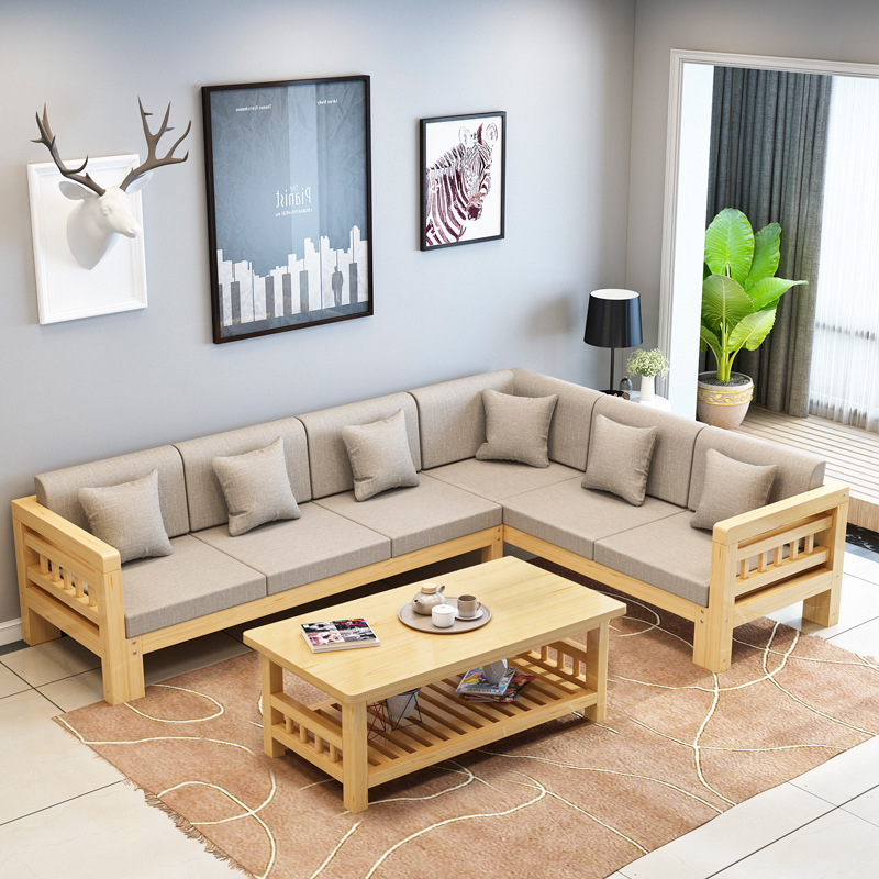 现代简约全实木沙发组合小户型客厅转角贵妃L型松木沙发三人中式