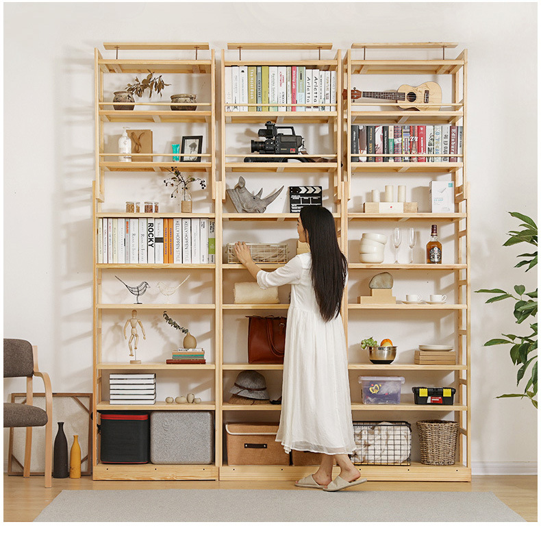 实木书架简易置物架顶天立地组合到顶储物架创意收纳落地整墙书柜