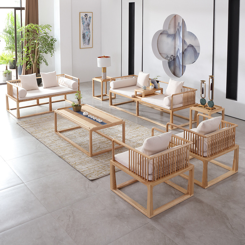 新中式实木沙发组合禅意别墅123白蜡木原木色现代客厅家具罗汉床