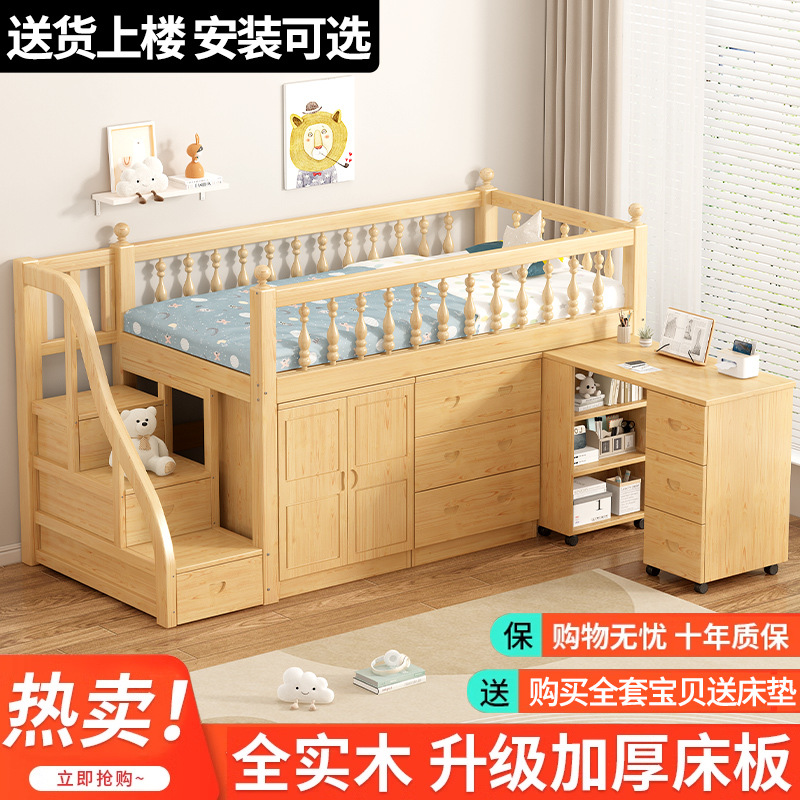 实木松木儿童床半高床带书桌衣柜卧室组合床高架床上床下桌简约风