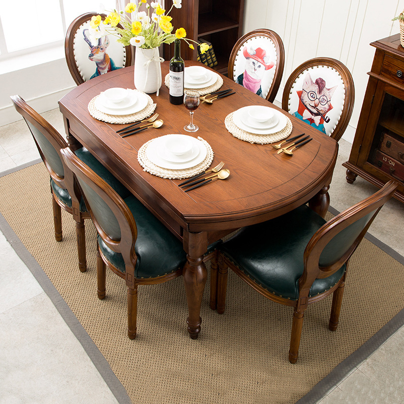 美式实木折叠餐桌吃饭桌子多功能小户型可伸缩餐桌椅组合变形圆桌