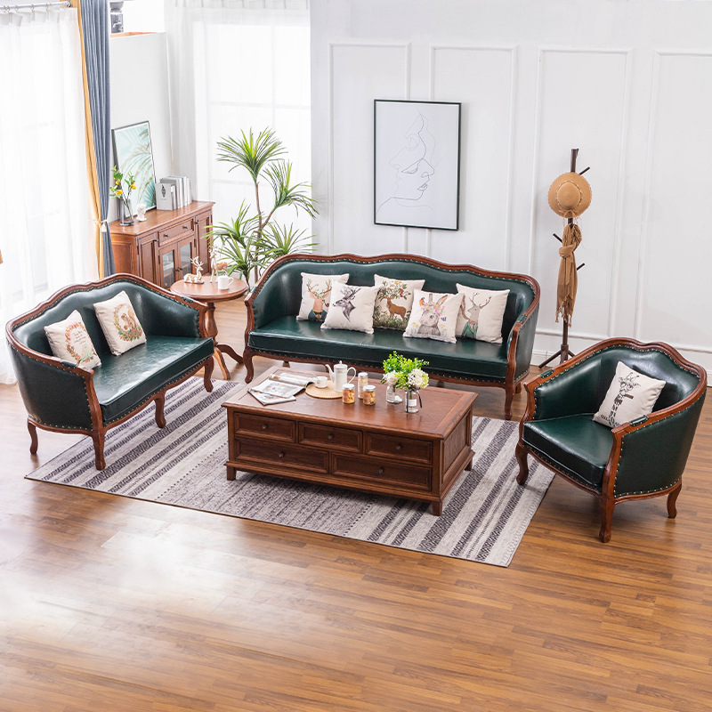 美式乡村全实木皮艺沙发复古皮布艺欧式沙发小户型客厅组合家具