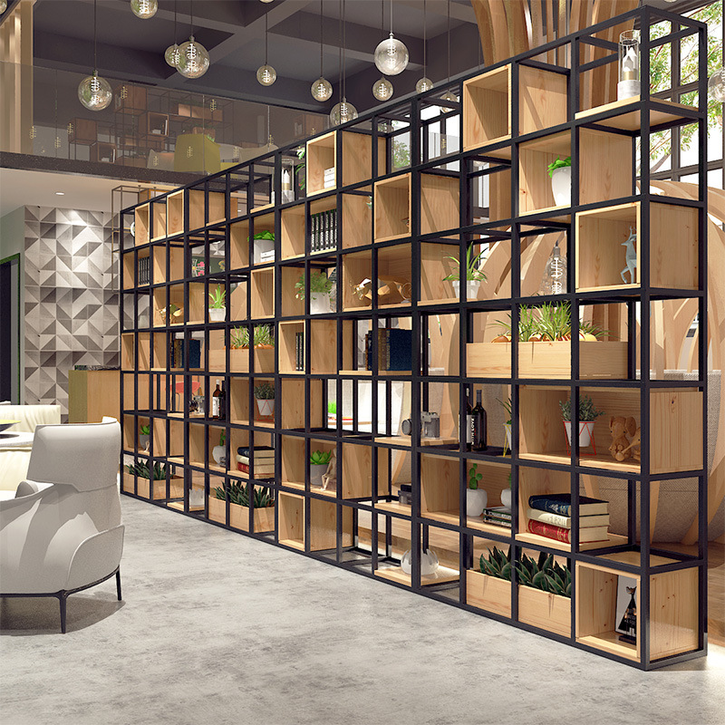 书架置物架书柜落地实木现代简约客厅简易卧室隔断铁艺屏风小格子