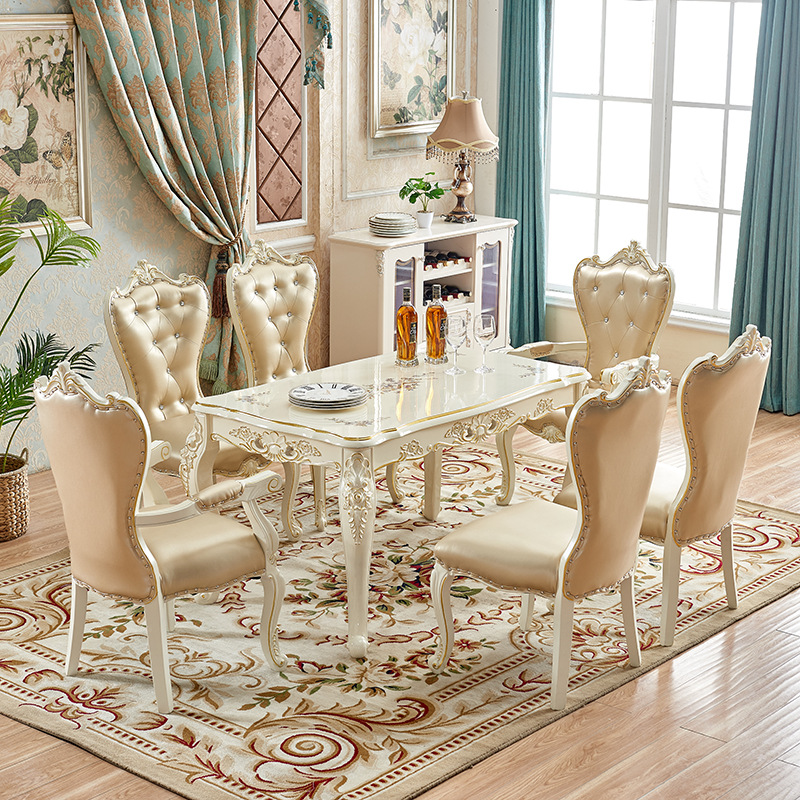 欧式餐桌椅组合现代简约珠光白实木饭桌小户型长方形桌子美式家用