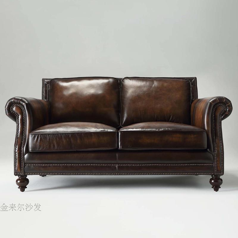 美式复古真皮沙发 欧式皮艺单双三人沙发 客厅家具油蜡皮沙发