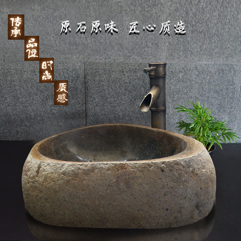 石头洗手盆复古鹅卵石小号台上盆家用石材卫生间洗脸盆幼儿园柱盆