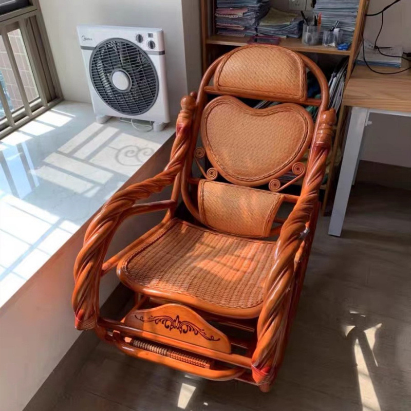 摇椅阳台天然真藤植物编织老人午睡椅子家用室内休闲逍遥老式躺椅
