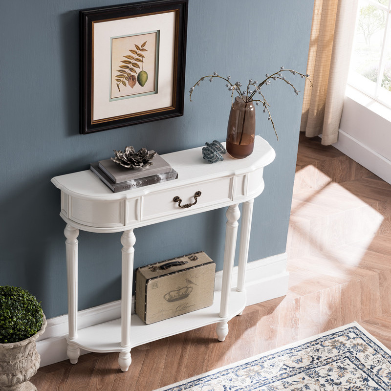 美式实木半圆玄关桌窄玄关台 现代简约走廊玄关柜 客厅过道装饰柜