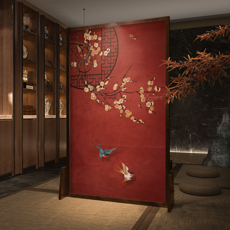 新中式移动屏风隔断客餐厅玄关茶室酒店办公室酒店红色中国风座屏