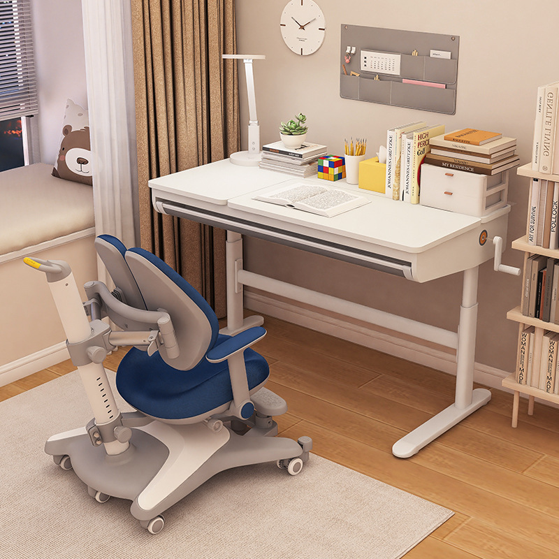 儿童学习桌家用书桌小学生写字课桌椅大白桌可升降实木套装