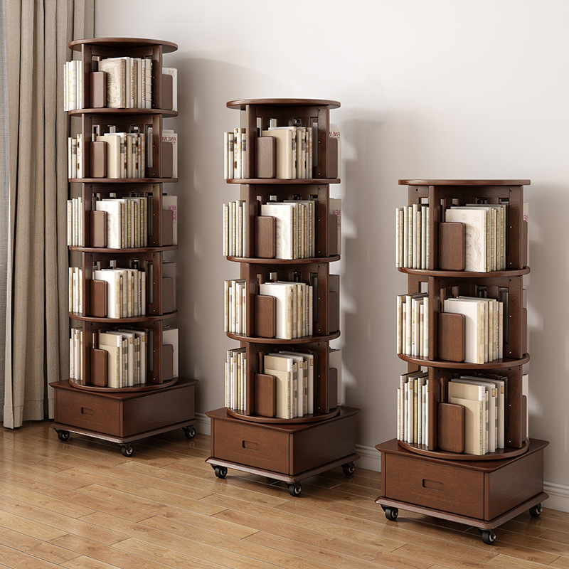 旋转书架360度书柜实木儿童移动带轮客厅网红卧室创意转角置物架