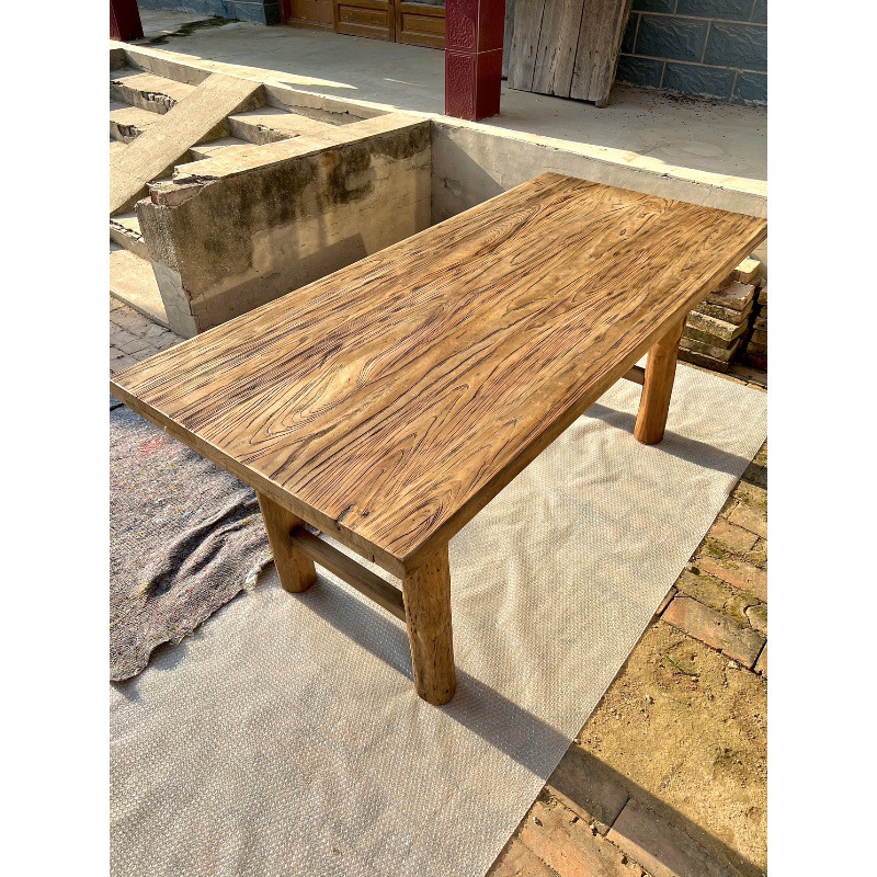 老榆木桌子复古茶桌原木实木桌子吧台长桌书桌餐桌阳台桌民宿