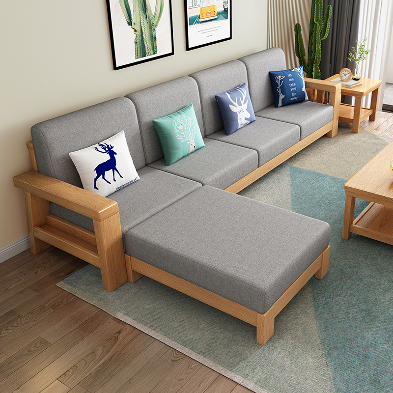 北欧实木沙发带拉床现代小户型家具简约经济型客厅木质布艺沙发