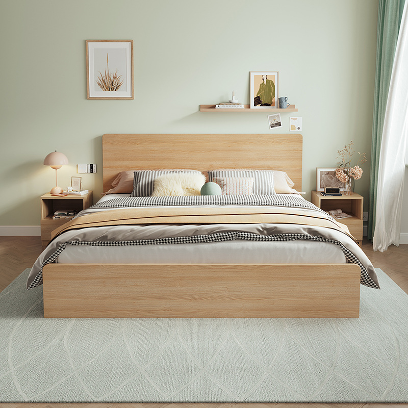 原木风板式床现代简约双人床1.5米单人床小户型省空间床
