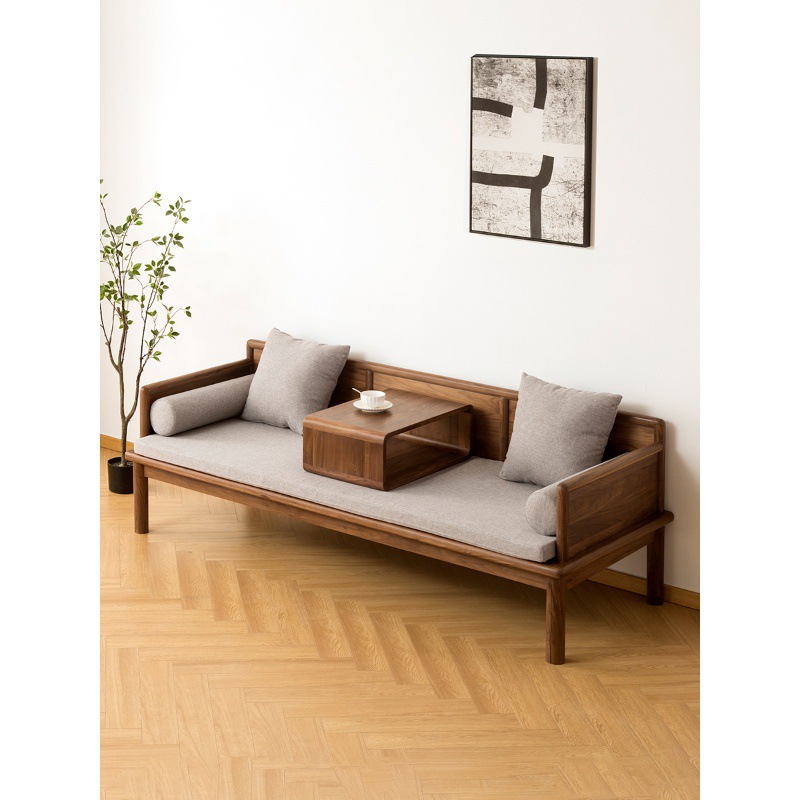 新中式黑胡桃木罗汉床简约白蜡实木伸缩沙发床小户型推拉禅意床榻
