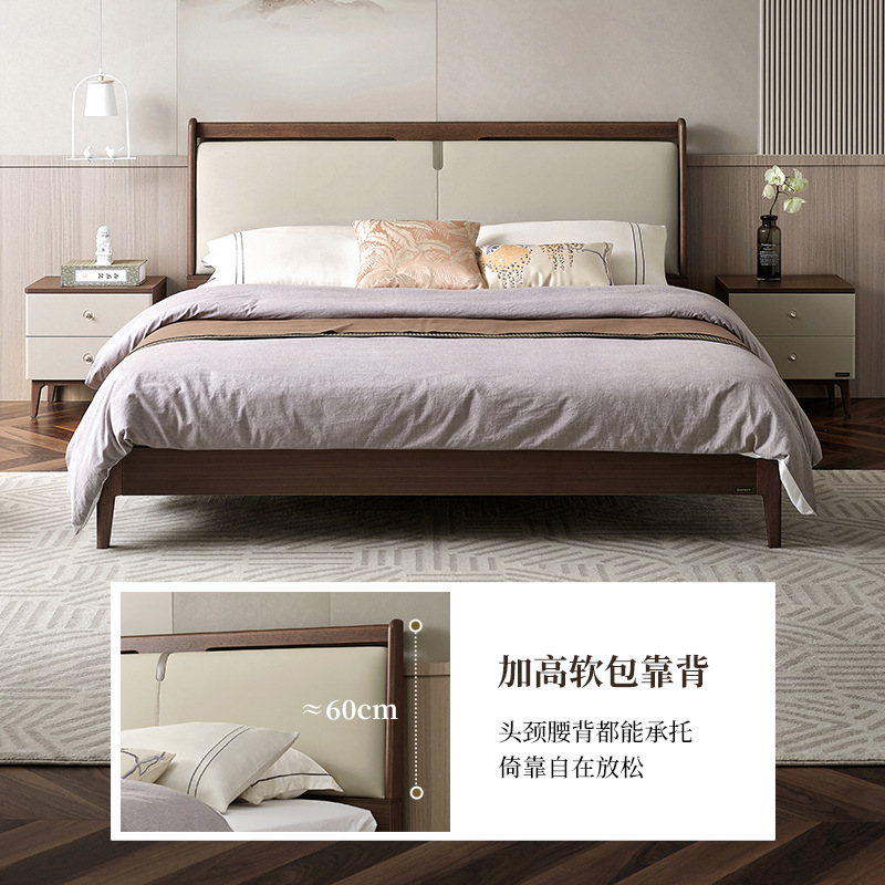 法式复古软包皮艺床卧室科技皮床实木脚双人大床