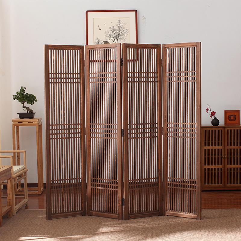 新中式屏风隔断客厅现代简约简易折叠移动折屏复古实木办公室屏风