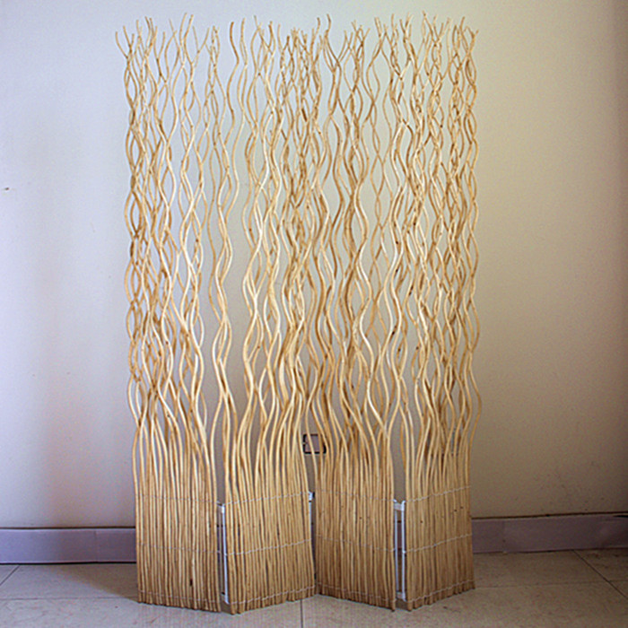 家居婚庆酒店四片弯柳枝实木原木田园北欧装饰折屏屏风隔断玄关