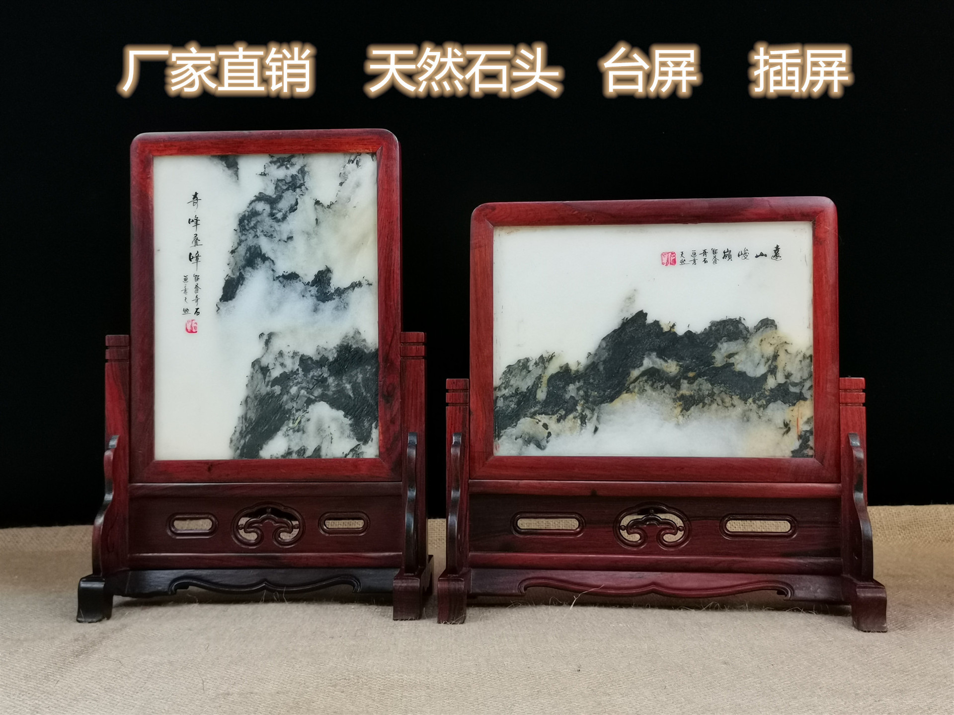红木酸枝大理石画复古明式台屏中式实木中堂家居古典屏风摆件插屏