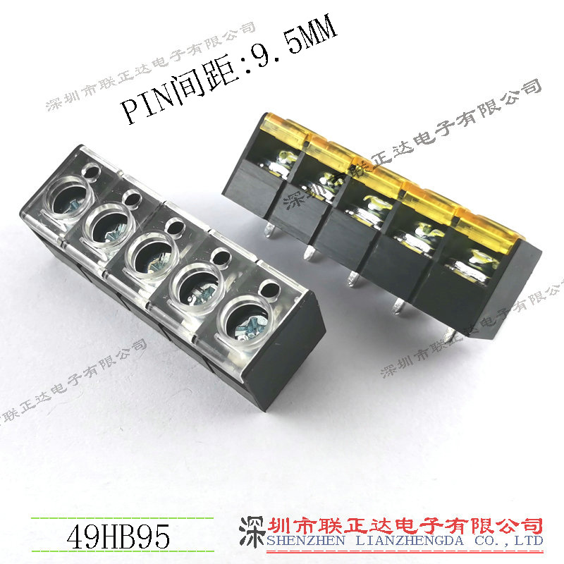 5桁端子台保護カバー付き端子9.5mm蓋付きねじ付き端子台