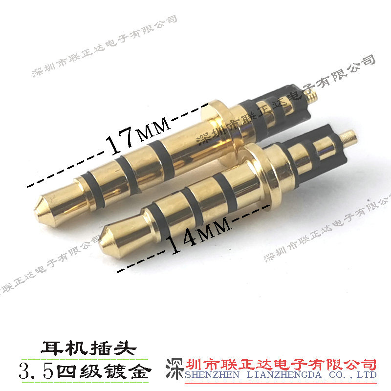 延長3.5金メッキ4極イヤホンプラグ4本金メッキ3.5本4本金メッキプラグ17mm