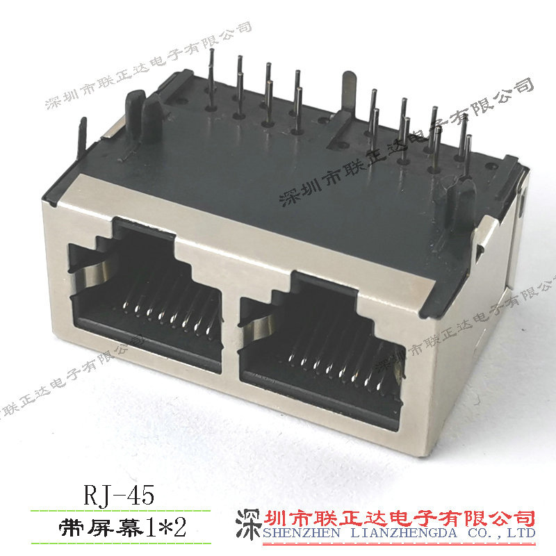RJ45両穴縦型180度インラインRJ-45ネットワークソケット1*2両口RG45