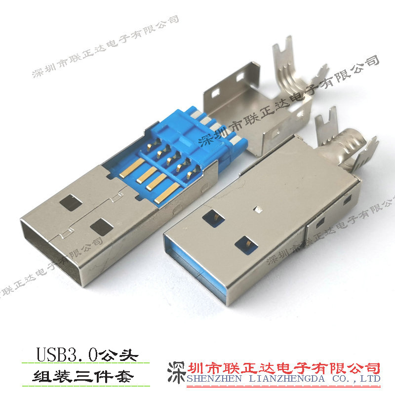 USB3.0オス3点セット装着型USB3.0プラグブルーUSBオス溶接線組立式