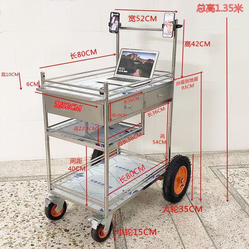 インターネット有名人ステンレス鋼ハイキングライブブロードキャストモバイルトロリーインターネット有名人屋外取り外し可能な収納ラック屋台メーカー