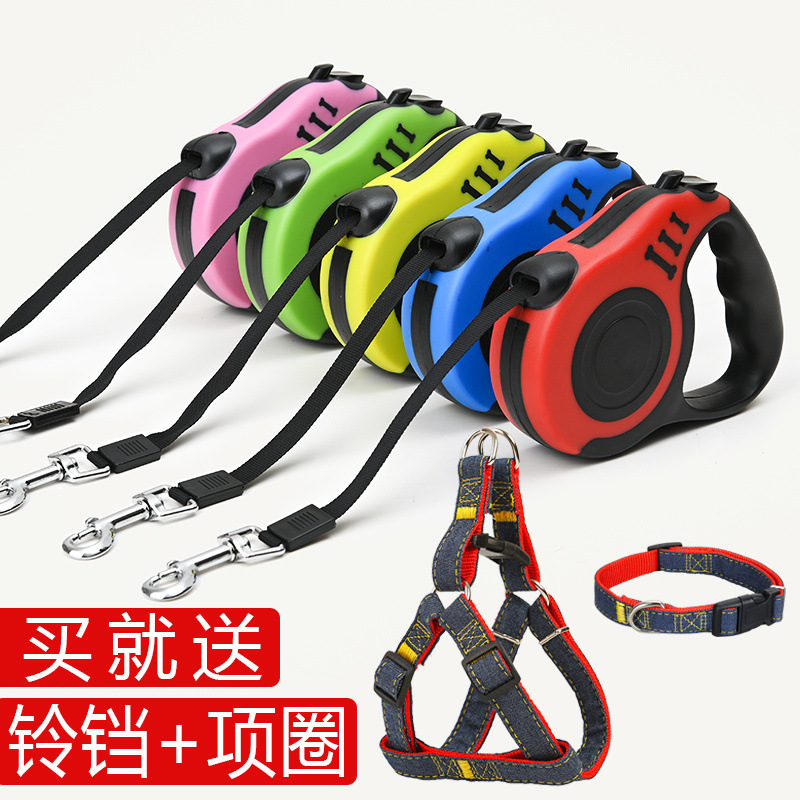 5m 犬デニム犬の散歩牽引ロープハーネス屋外小型犬自動格納式首輪テディチェーンメーカー