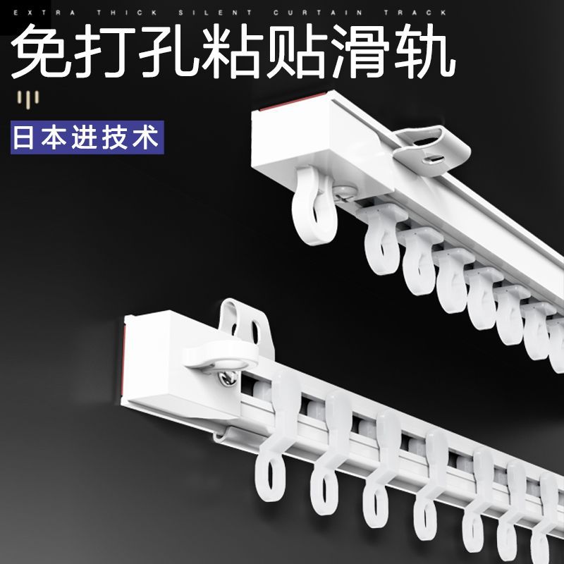 カーテンレール、パンチフリースライドレール、サイドマウント、トップマウント、粘着式サイレントレール、カーテンアクセサリーロッド、粘着レール、スライドレールメーカー