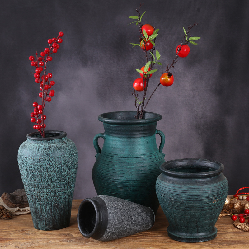 花瓶、レトロな粗い陶器、ドライフラワー、水耕栽培、中国の多肉植物の植木鉢、土陶器の壺、見栄えの良い家庭用メーカー