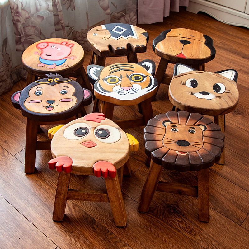 Yili 家庭用無垢材スツール漫画子供用スツールかわいい漫画動物小さなベンチ家庭用靴交換無垢材メーカー
