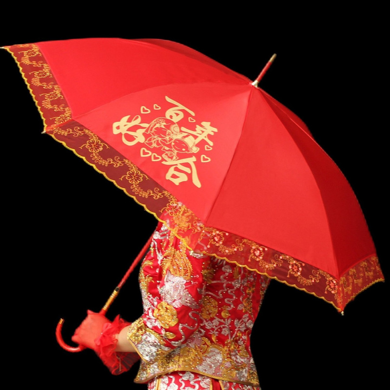 ウェディング用品花嫁のお出かけ赤い傘お祝い結婚式傘結婚式赤全自動スパンコール長柄傘晴れメーカー