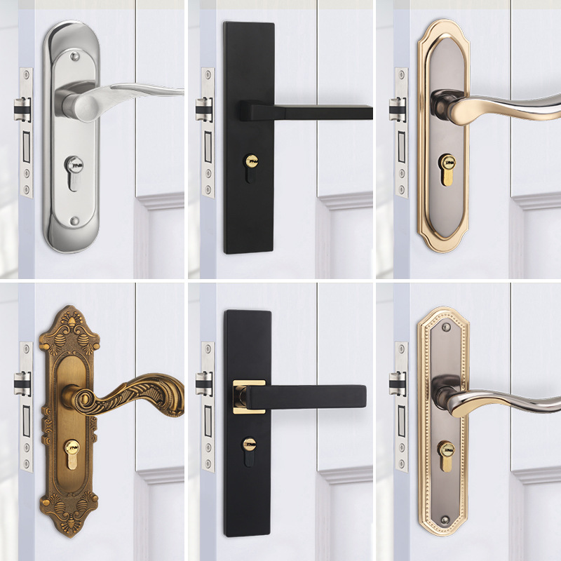 ドアロック家庭用汎用型寝室内ドア黒色ロック3点セット静音旧式ドアハンドル旧ドアロック
