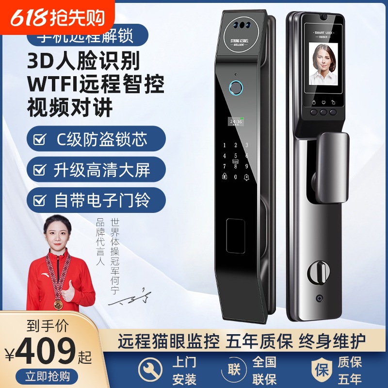 全自動指紋ロック、顔認識スマートドアロック、パスワードロック、家庭用盗難防止ドアビジュアルキャットアイ電子ドアロック