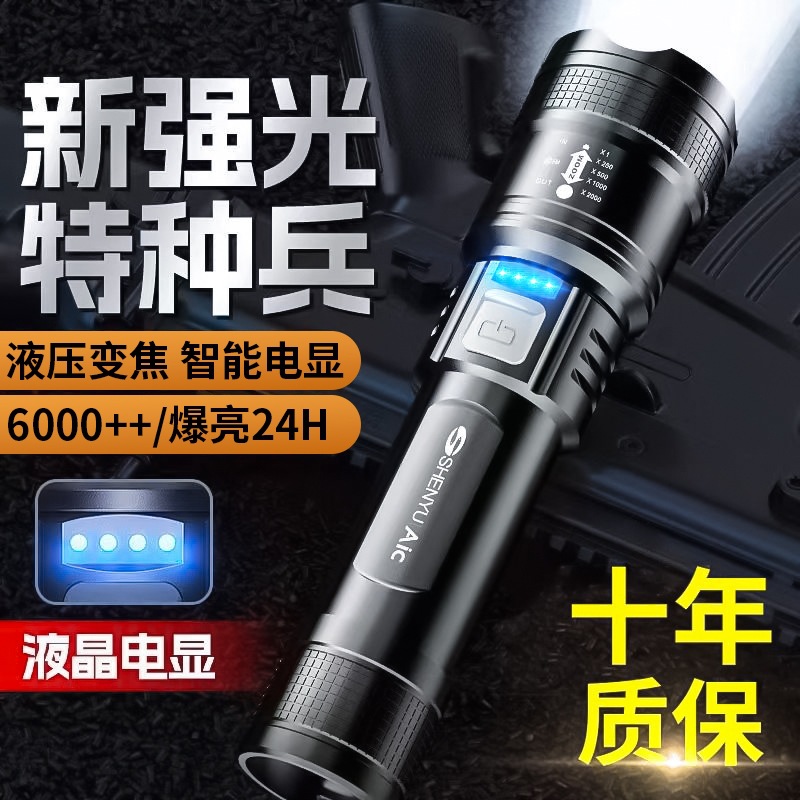 強力な光の懐中電灯、充電式、長持ち、耐久性、家庭用屋外ズームスポットライト、ポータブル超高輝度キセノン照明